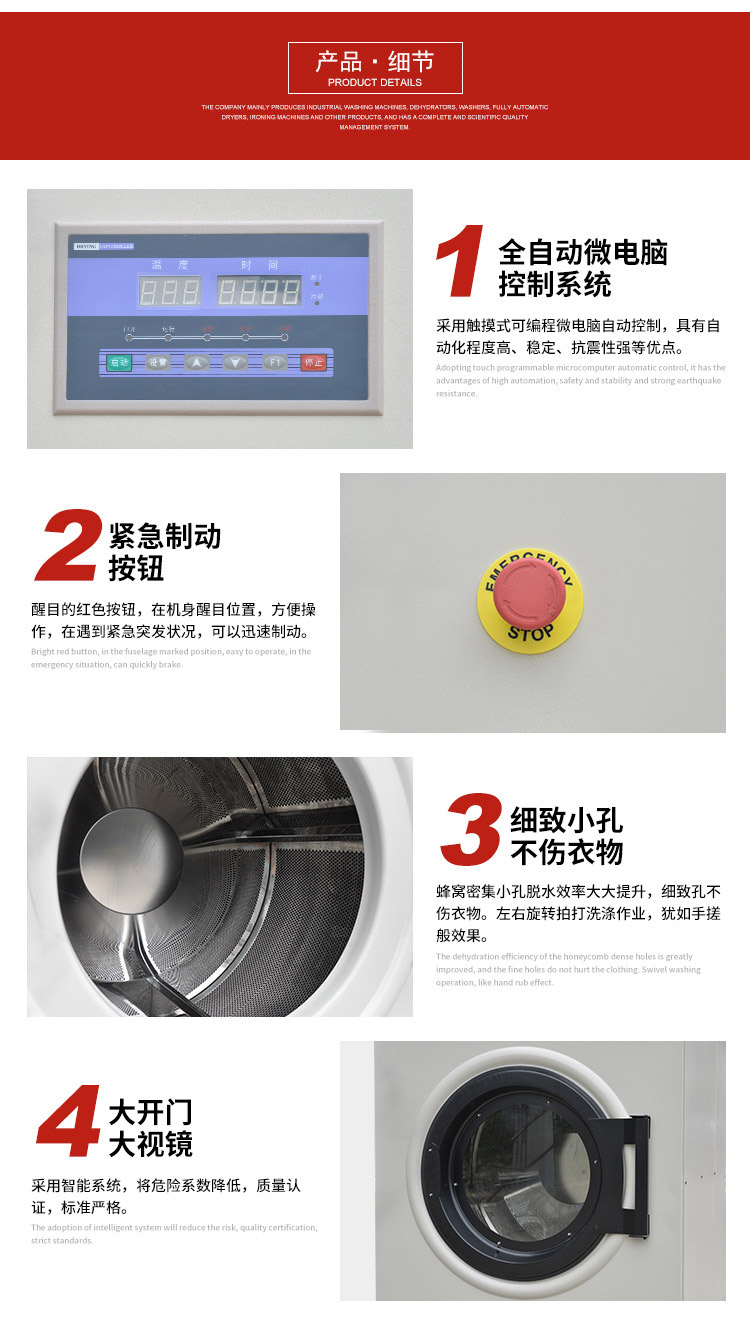 2、洗衣房工業(yè)烘干機(jī)的電加熱發(fā)熱管為不銹鋼制成,升溫快,發(fā)熱效率高。