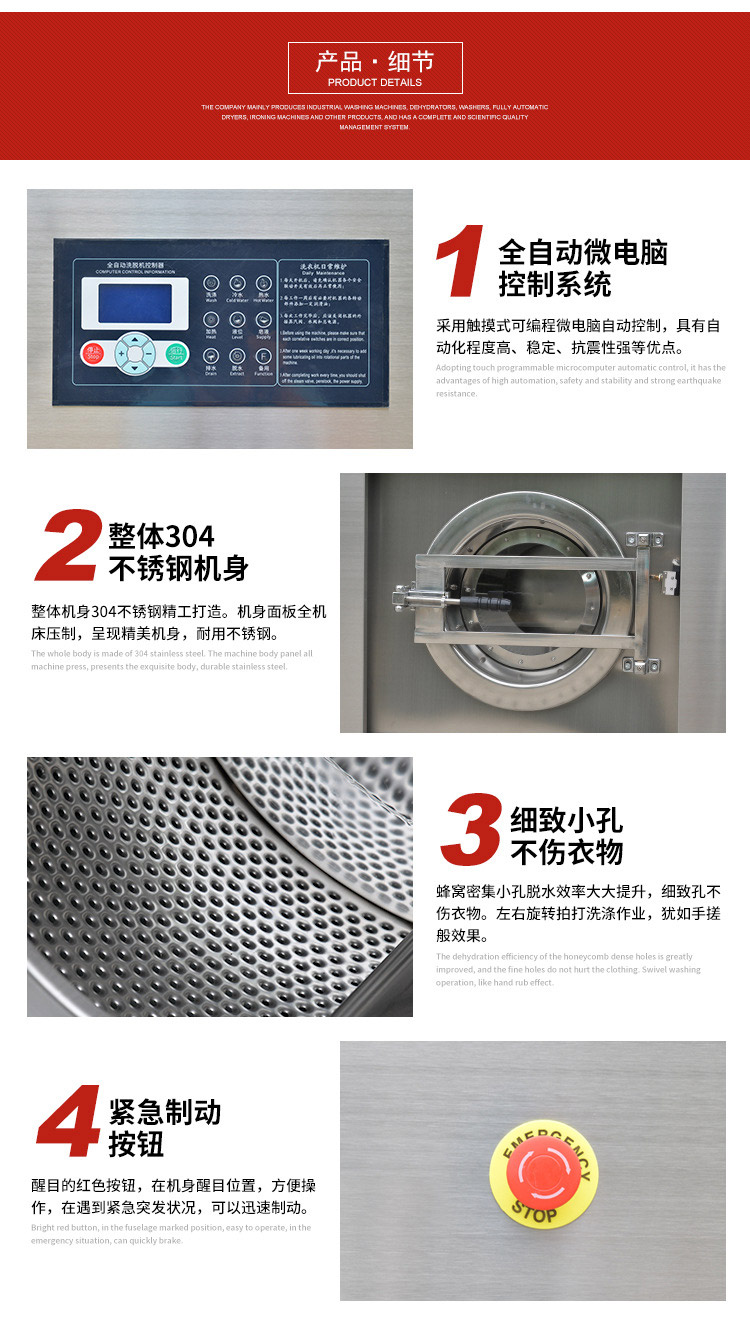 4、 電腦控制,全自動/手動可選,洗滌容量大,洗凈率高,外形美觀。